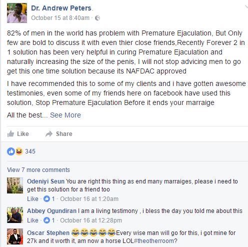 As you can see below, these are regular people, just like you and me, who decided they wanted a life free from hormonal and erectile dysfunction, poor sexual performance and inability to please/satisfy their wife/partner. They took the plunge, and corrected their weak erection, premature ejaculation, and small Iroko syndrome. There are so many testimonies I would have posted here but I won’t due to space