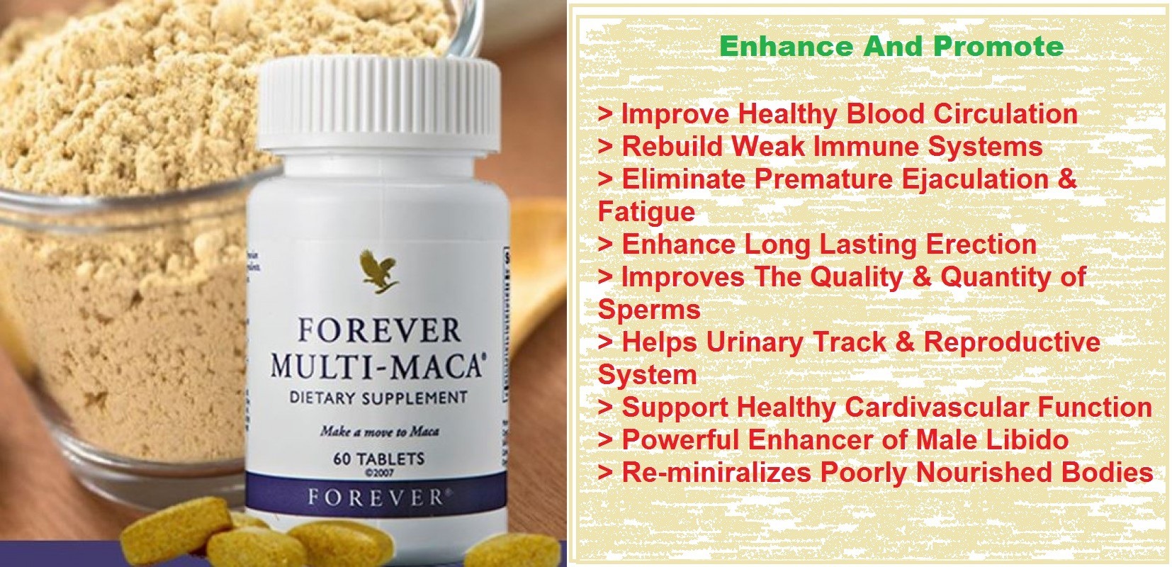 The Combination Of Forever Multimaca + BEE POLLEN Is A System That Is Guaranteed to Work For You And It Is Your Last Bus Stop Solution For Erectile Dysfunction.
